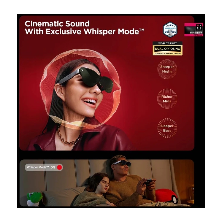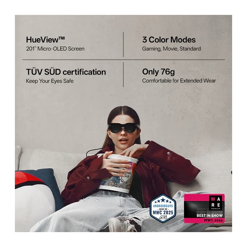Immersive 201" on-the-go gaming/streaming display. Crisp HueView™ micro-OLED, smooth 3840 Hz PWM Opticare™, and world-first dual acoustic chambers deliver vibrant visuals and sound. Ergonomic design ensures lasting comfort.