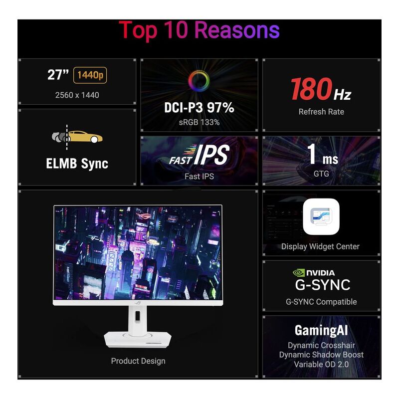 ASUS ROG Strix XG27ACS-W USB Type-C - 27-inch 180Hz Gaming Monitor - White