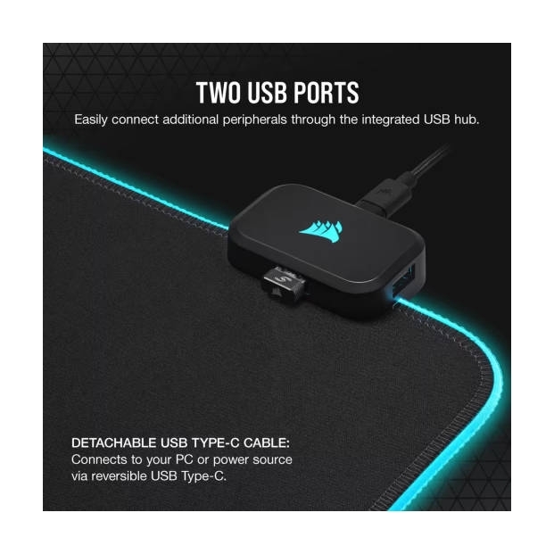 - Two-Port USB Hub: Conveniently located USB ports provide easy connections for additional peripherals such as a CORSAIR headset or mouse.