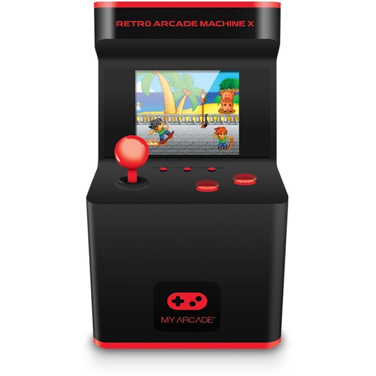 Bring all the excitement of the arcade to the palm of your hand! Modeled after traditional arcade cabinets, the Retro Arcade Machine X will be sure to evoke feelings of nostalgia. Comes with 300 pre-loaded games and has a full LCD screen with illuminated buttons for optimal play.