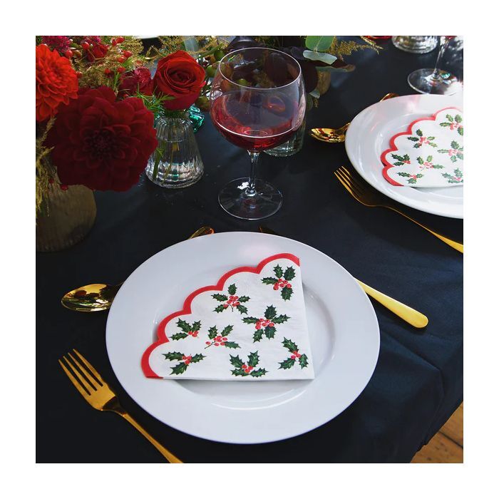 Talking Tables Botanical Holly Scalloped Napkin (Pack of 20)