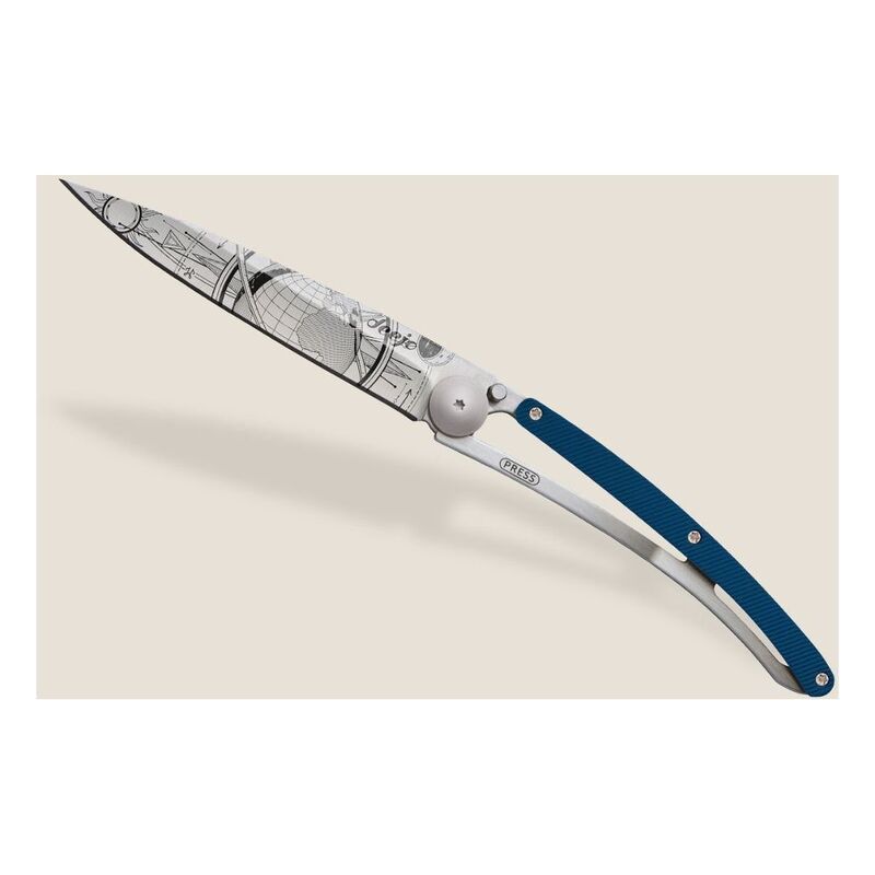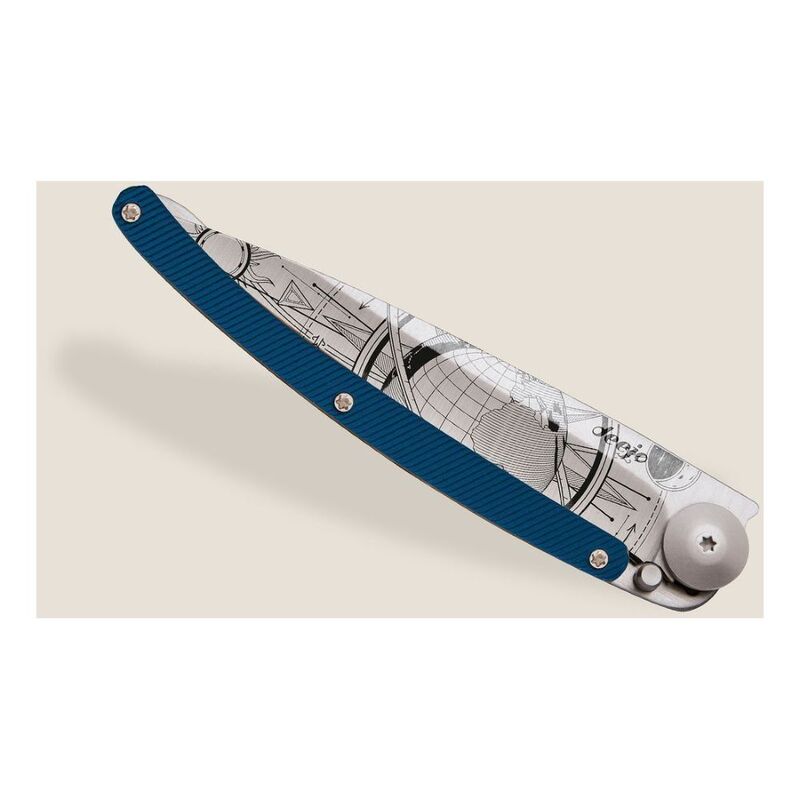 Deejo 37G Blue Aluminum Pocket Knife - Globe Trotter Blue