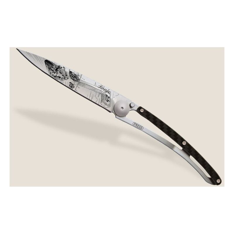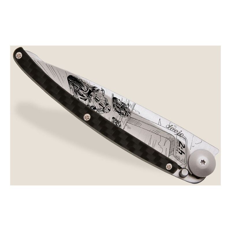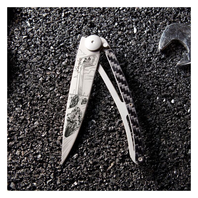 Deejo 37G Carbon Fiber Pocket Knife - 24H Le Mans Moto Start - Black