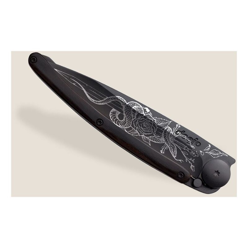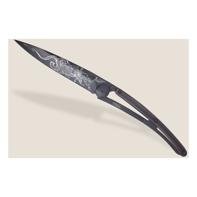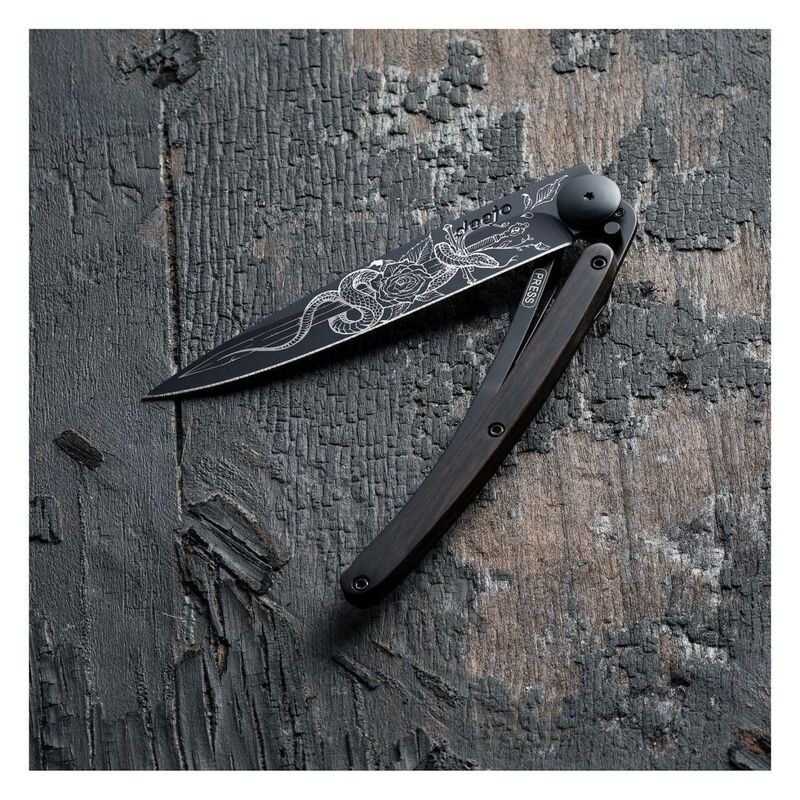 Deejo 37G Ebony Wood Pocket Knife - Glaive Dark