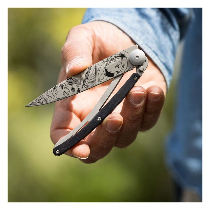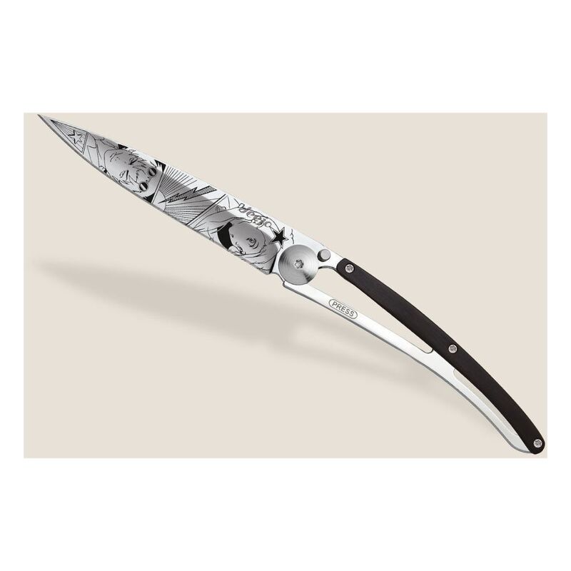 Deejo 37G Ebony Wood Pocket Knife - Manga Art Black