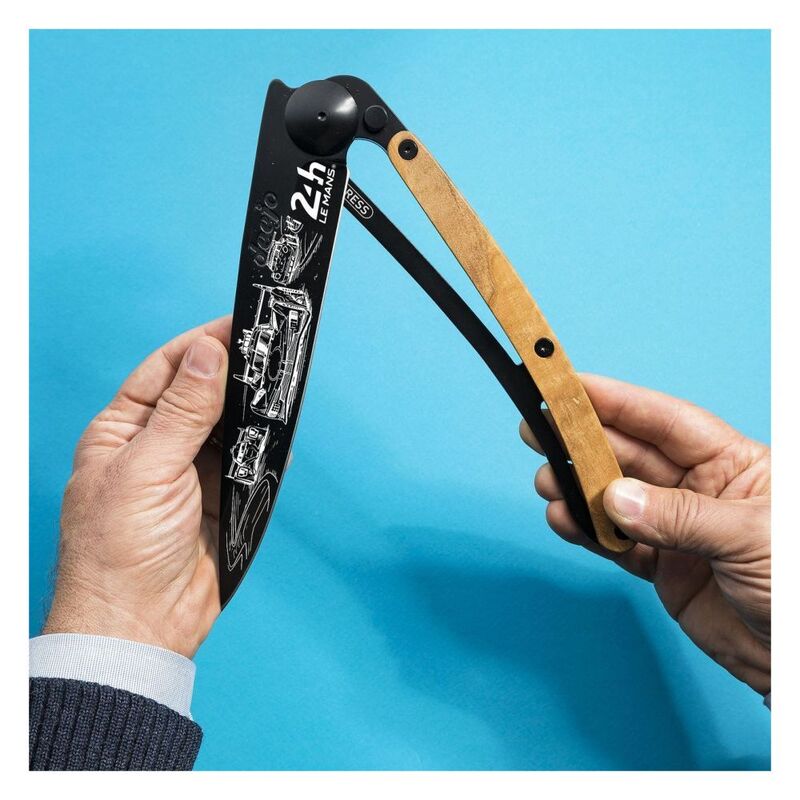 Deejo 390G Olive Wood Pocket Knife - 24H Le Mans Trio Llimited And Numbered - Brown