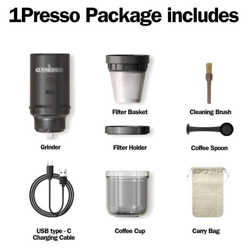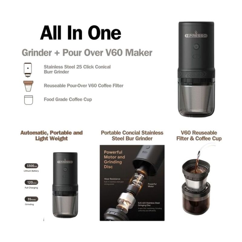 1Presso Portable Electric Grinder And V60 Machine Black