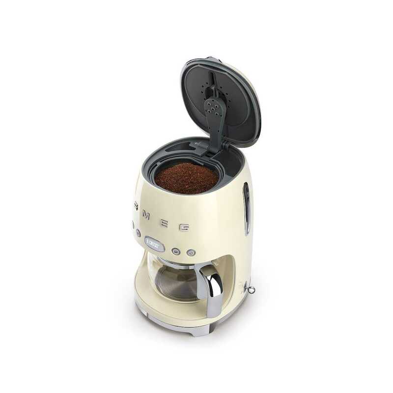 The Smeg DCF02 drip coffee machine allows you to prepare a deliciously aromatic, richly-flavoured coffee with the option of selecting the aroma intensity you prefer, to satisfy both the most delicate palates and those in search of more intense flavours. This machine combines high levels of performance with a unique design, making it an object to show off. The filter coffee machine is equipped with an aroma intensity selector (from intense to delicate) with a Digital LED display and Clock / Timer and the Auto Start function to set the automatic start time. Up to 10 cups of coffee can be made in the glass carafe, ideal when entertaining family and friends. There is also a 4 cups function perfect for when a smaller quantity of coffee is needed. A handy Keep warm function also keeps your pot of coffee warm for up to 40 minutes after brewing.