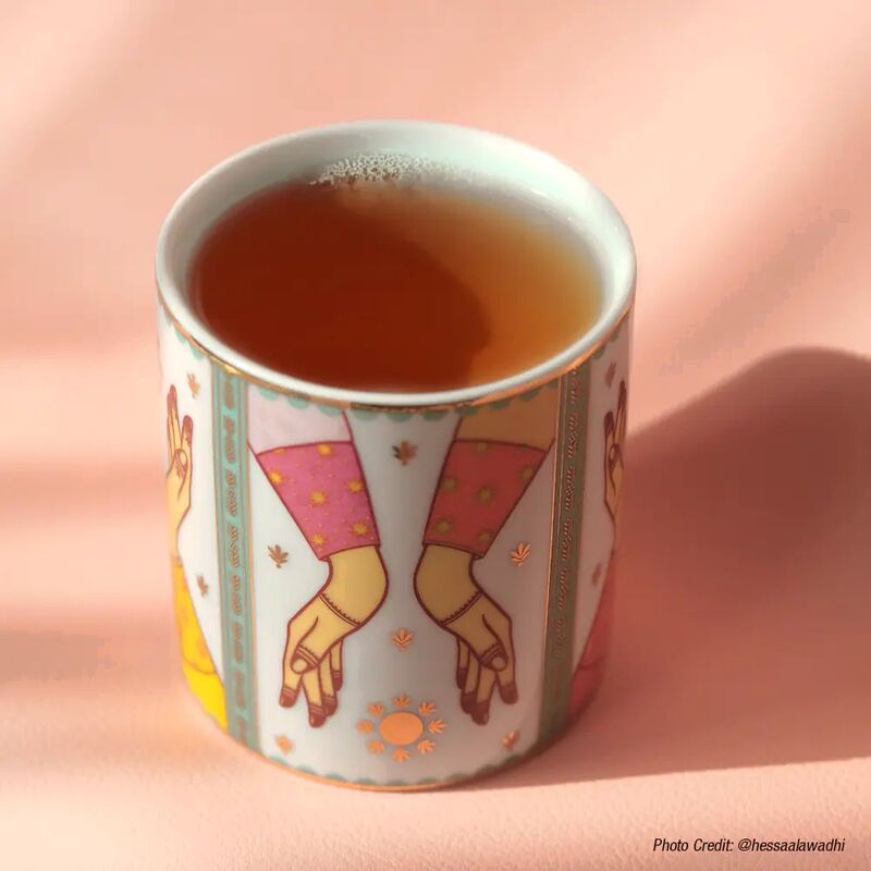 Perfect for one-on-one get-togethers or simply indulging in some quality 'me-time', Hessa's set of 2 Green-Tea Cups are adorned with a stunning array of colors, including mint, gold, cumin-yellow, pink, and orange, showcasing the traditional and elegant art of Hessa. Delivered in a signature Silsal gift box, the duo comes beautifully packaged with a charming ribbon, making it an ideal gift for yourself or your loved ones.