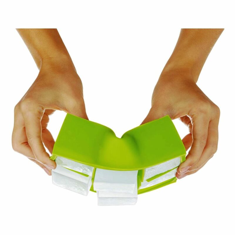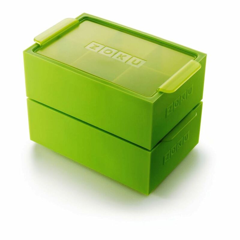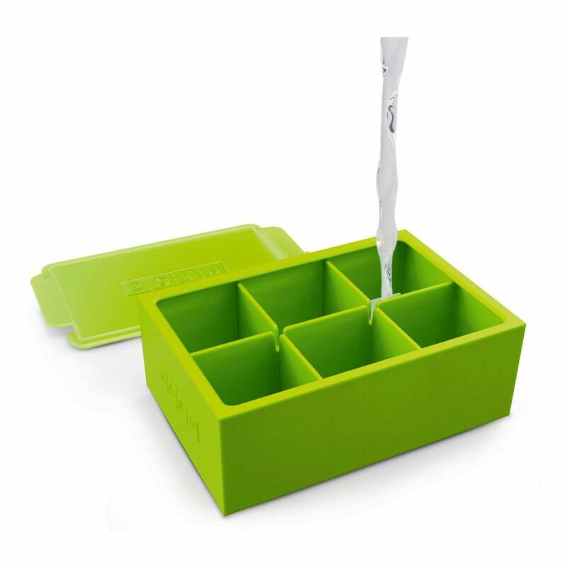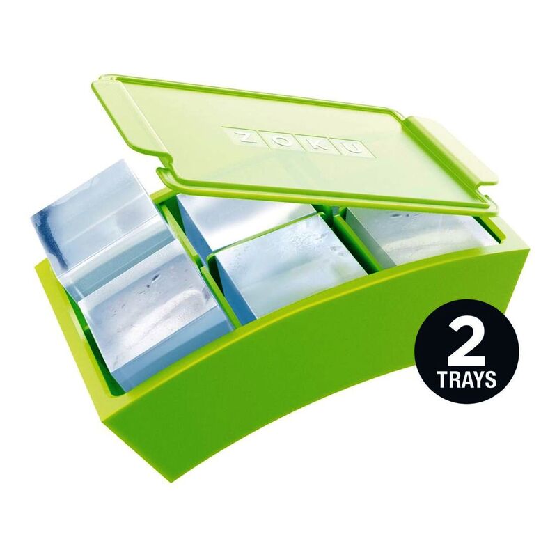 Make perfect ice cubes using Zoku’s silicone Jumbo Ice Cube Trays. This space-saver pack of two molds makes six extra large ice cubes each and conveniently stacks on each other. The tightly sealed flavor-guard lid prevents freezer-tasting ice and spills while transporting to the freezer. Nearly flawless cubes easily remove by inverting the silicone mold—no rinsing required!