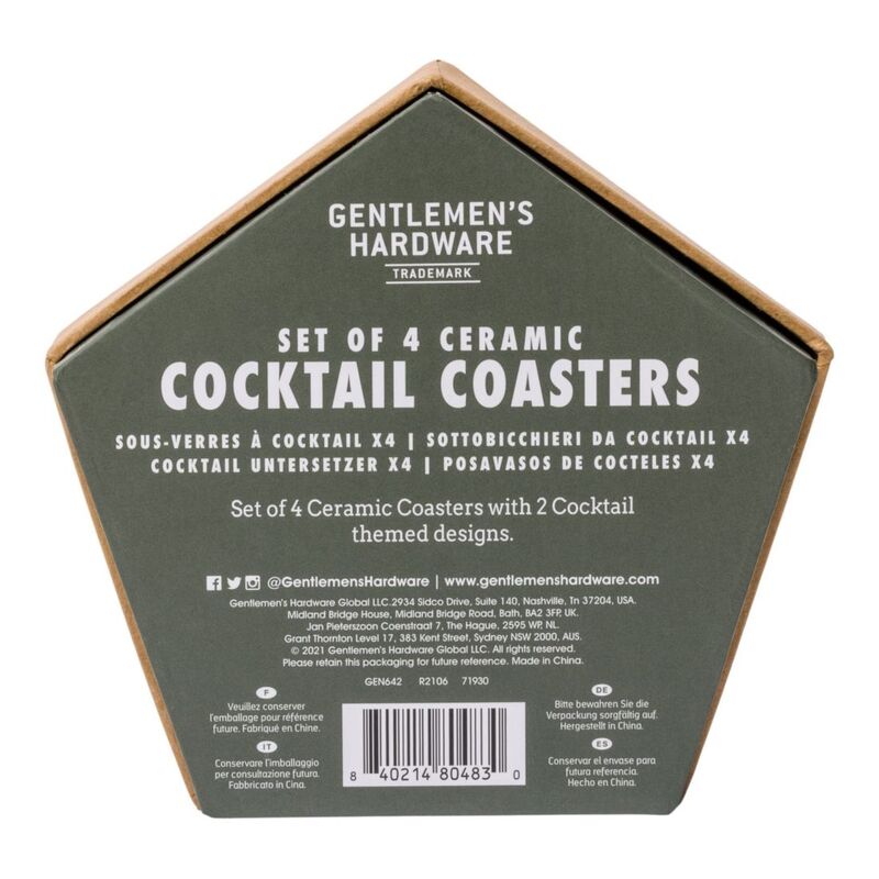 Set of 4 Ceramic Coasters with 2 cocktail themed designs.