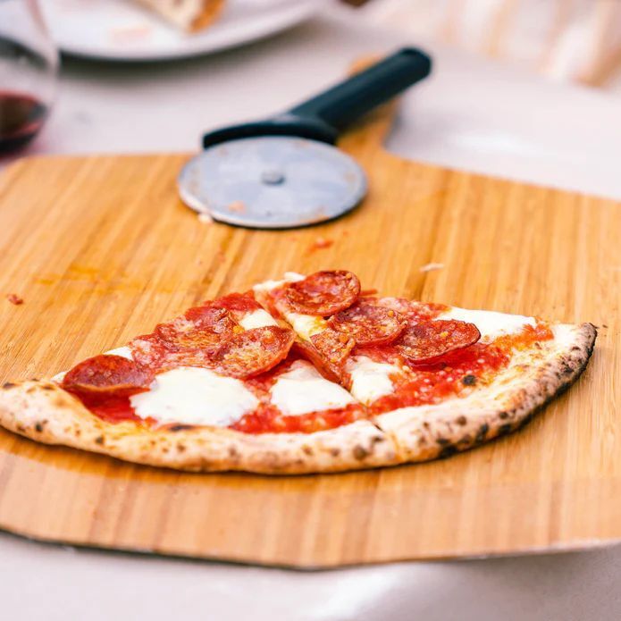 Launch pizzas with ease using the lightweight, durable Ooni Bamboo Pizza Peel & Serving Board. Featuring a moisture-resistant, smooth bamboo surface to prevent pizza dough from sticking, it also doubles up as a board for serving and slicing pizzas.
