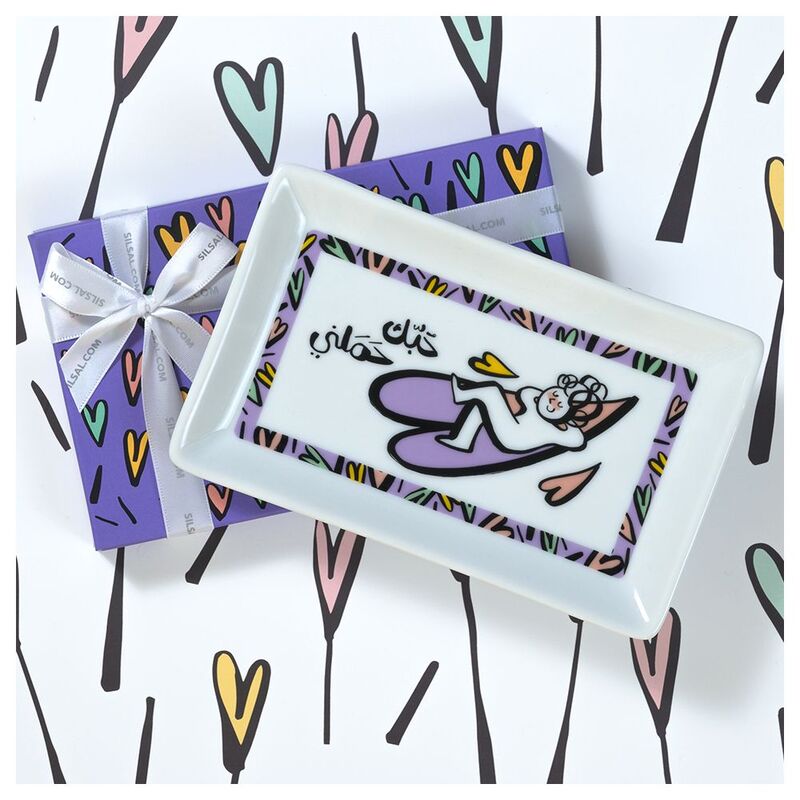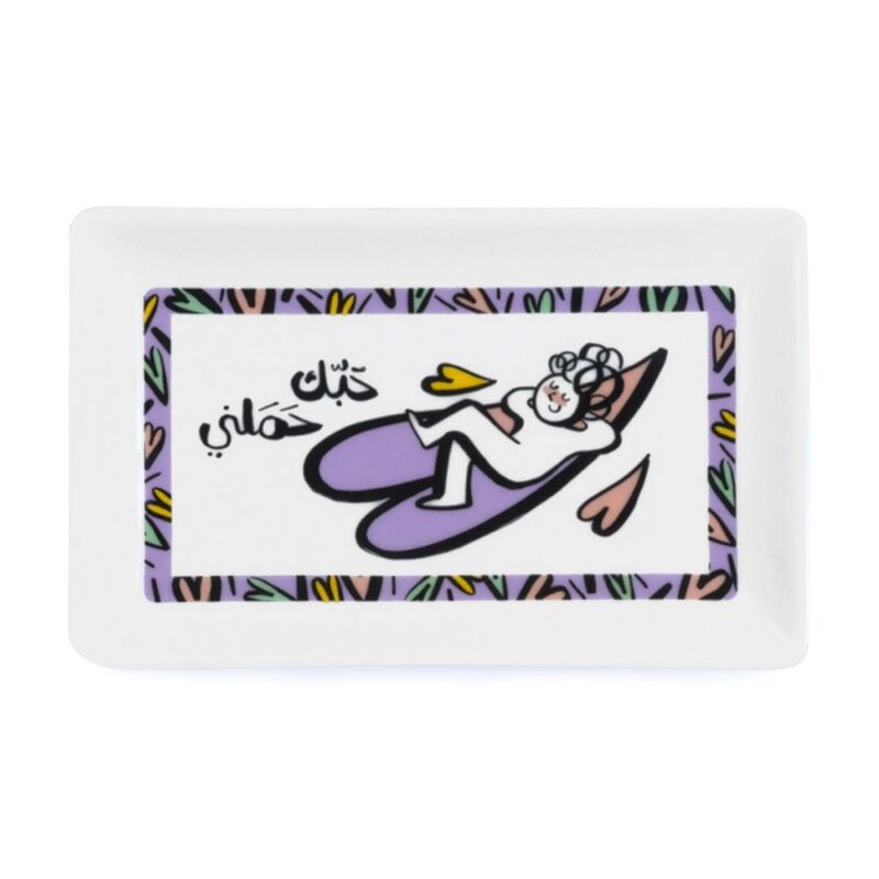 Keep your favourite trinkets out on display with this porcelain catchall tray, created in collaboration with Jordanian artist and illustrator Dina Fawakhiri. Exuding wit and whimsy, it’s brought to life with a sweet illustration accompanied by the words “Hubbak hamalni", meaning "Your love carries me”, in quirky Arabic calligraphy. Keep it by the front door for grab-and-go essentials, use it to store jewelry and gems, or gift it to a trinket-lover the options for home curation are endless.