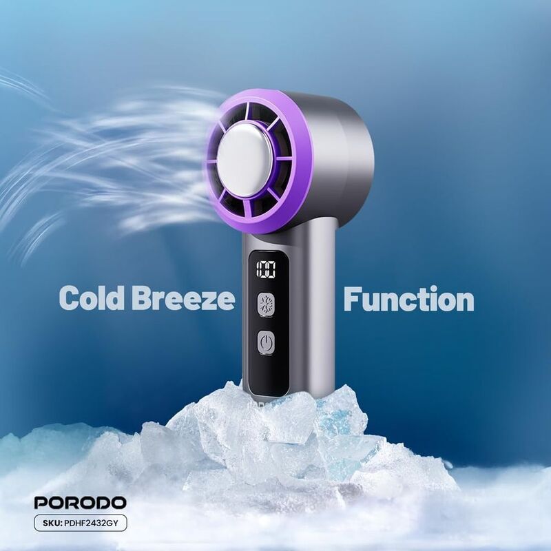 Porodo 3000Mah Handheld Fan Cooling Compressor With 100 Gear Speed & Led Display - Gray