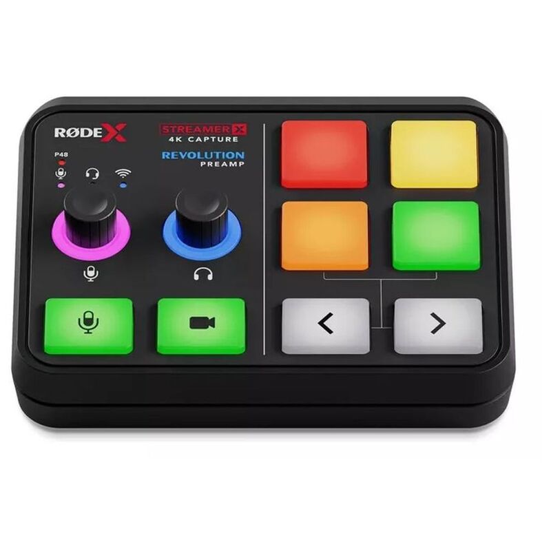 The Streamer X is a professional video capture card, audio interface and control surface integrated in one compact device that makes creating incredible content incredibly easy. It features studio-grade audio inputs for XLR microphones and instruments, headsets and RØDE wireless microphones, with an ultra-low-noise, high-gain Revolution Preamp and powerful APHEX audio processing delivering pristine sound quality. HDMI connections offer up to 4K30 / 2K60 streaming and 2K120 / 4K60 pass-through for incredible video quality in a wide range of applications, from streaming and gaming, to podcasting and content creation, to business presentations.