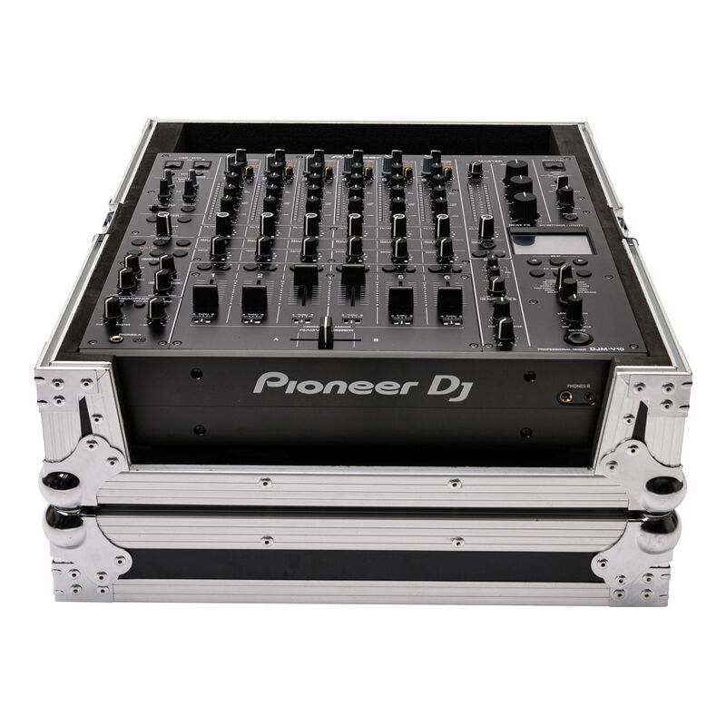 Custom designed to accommodate a Pioneer DJM-V10 or DJM-A9 club-mixer. The included foam-set provide a snug fit for the slightly smaller DJM-A9 mixer. Crafted from 9 mm vinyl laminated plywood, sturdy aluminum profiles and heavy-duty butterfly latches this case provides ultimate protection for mobile use on the road.