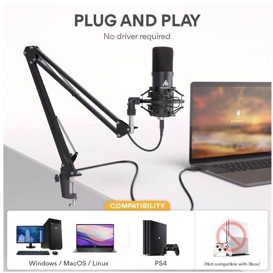The A04 microphone has a USB 2.0 data port which is easy to connect with your computer and Linux operation system, and no need for extra driver software, and no need for an external sound card. Double shielding USB cable reduces interference. That makes it easy to sound good on a podcast, Livestream, video call, or almost any other kind of recording.