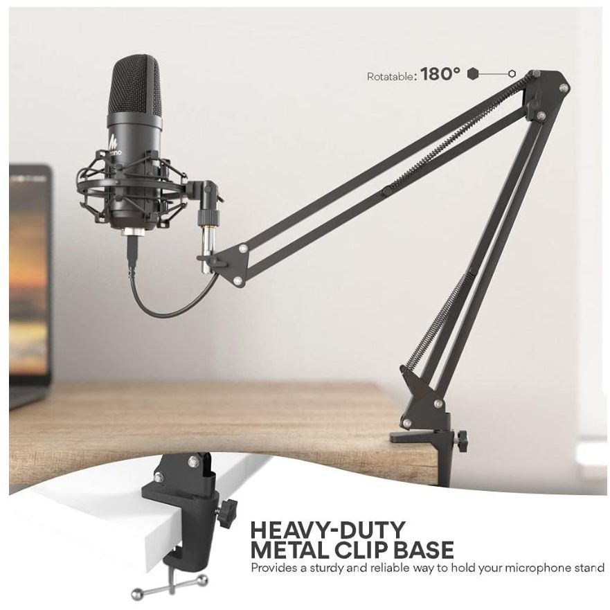 With a pop filter and a foam windscreen, the condenser mic records your voice and the sound is crystal clear, the shock mount holds the microphone steady with a damping function. Particularly good for video voiceovers; podcasts; YouTube video; skype conferences and so on.