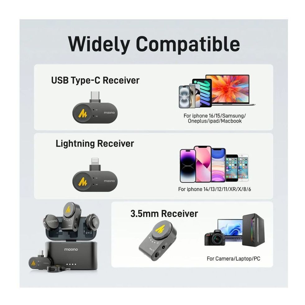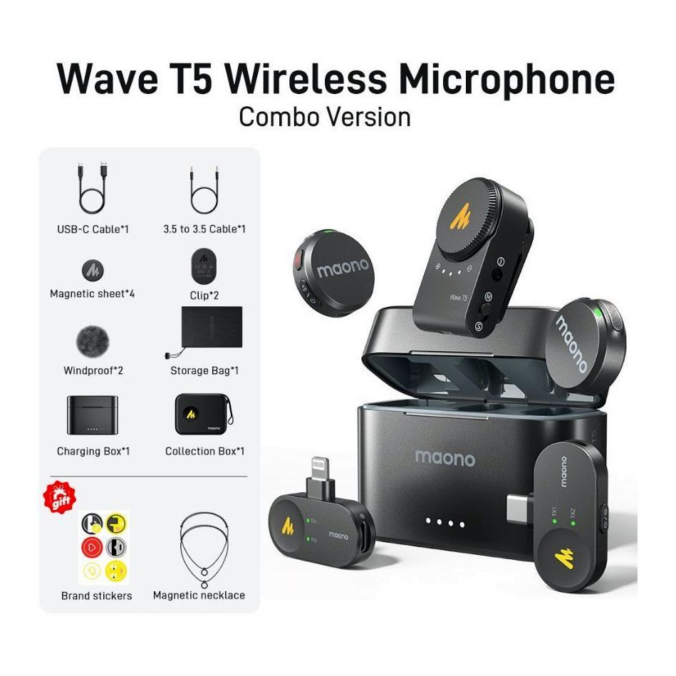 Maono Wave T5 Combo Wireless Lavalier Microphone For Camera / Lightning / Type-C - Black