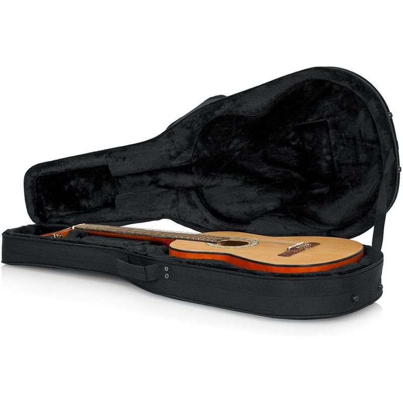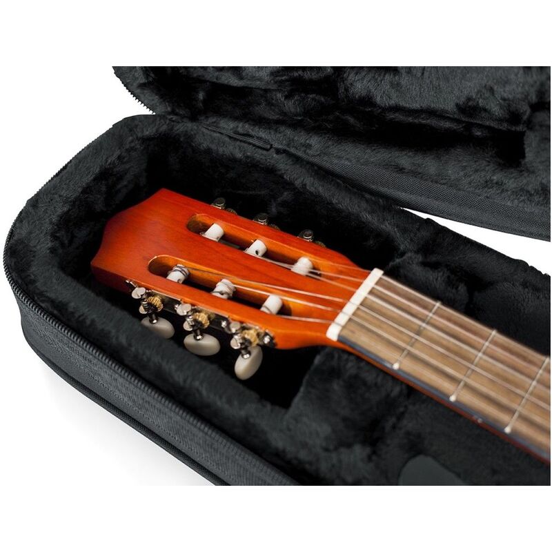 Gigging guitarists at here know that the Gator GL-CLASSIC lightweight classical guitar case is just the right blend of protection and convenience. From your car's back seat to your spot on stage, protecting your guitar is always the priority. The GL-CLASSIC's semi-rigid frame is covered with a 600-Denier nylon outer shell that resists moisture and tearing, keeping your guitar clean and safe. Convenient exterior pockets are ready for your gig essentials and the plush interior lining leaves your guitar's finish scratch-free - you'll always be ready to play with Gator's GL-CLASSIC lightweight classical guitar case.
