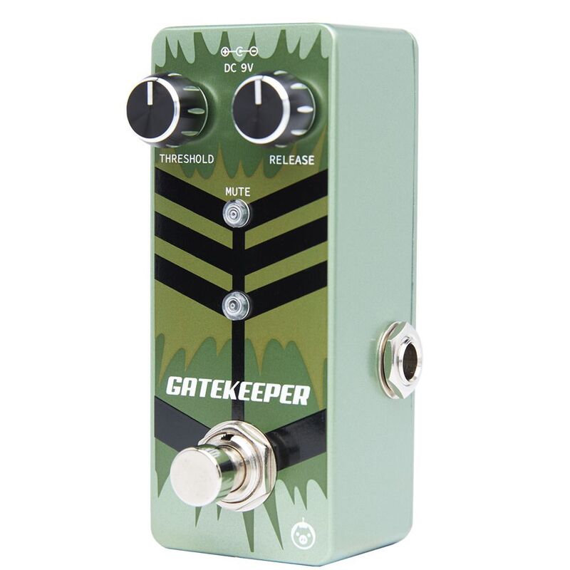 Gatekeeper is a lightning fast, studio-quality noise gate that locks out unwanted noise from any rig. Featuring Threshold and Release knobs, Gatekeeper provides 100% attenuation with unprecedented response time and utilizes ultra high-speed J-FET circuitry to completely eliminate hum, hiss, buzz and any other intrusive non-musical sounds from your signal path. Its wide range Threshold control combines with exceptional headroom to deliver smooth transient response previously available only in rackmount, studio-oriented noise gate processors. The addition of the Release knob allows the user to control how long it takes the gate to slam closed.
