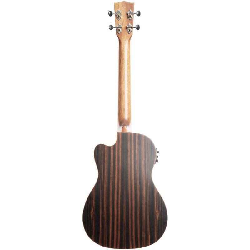 The Solid Spruce Top Striped Ebony Series comes in concert, tenor, and baritone models, the baritone model comes with a venetian cutaway and Fishman® Kula preamp. Spruce is known for its clarity, and dynamic range and response while ebony provides strong bass presence and responsive highs for a well-rounded sound profile. Available in concert, tenor, and baritone models, baritone available with a cutaway and electronics.