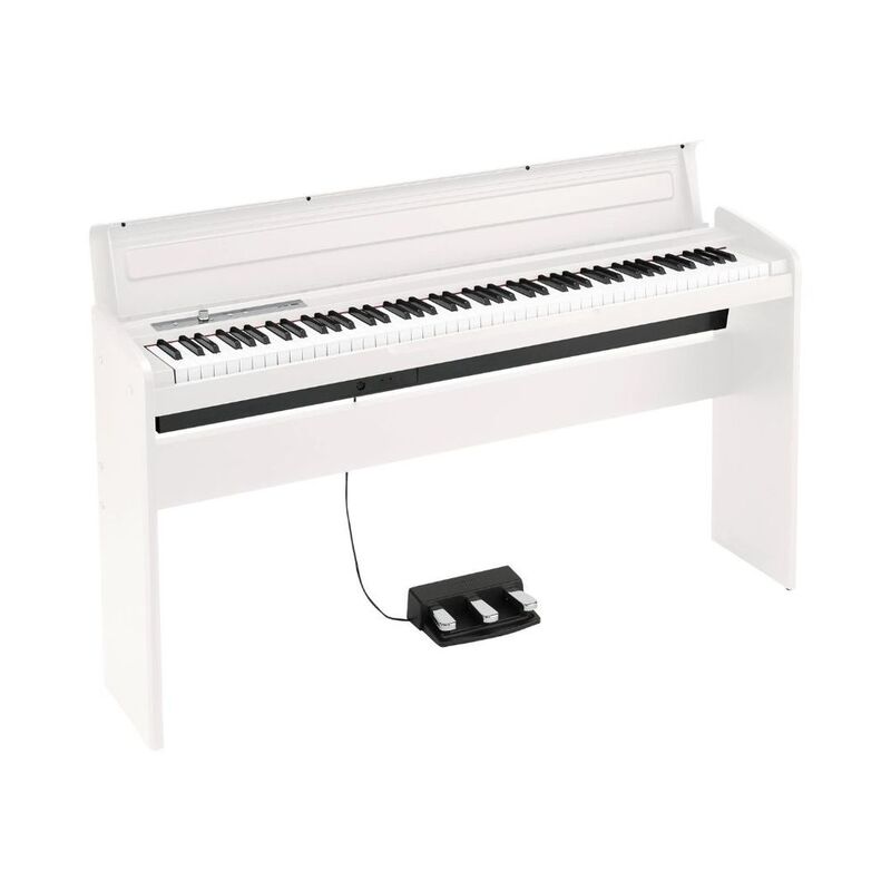 The KORG LP-180 combines slim, stylish design with rich, authentic piano sound. Its Natural Weighted Hammer Action (NH) keyboard offers realistic touch, while a three-pedal unit supports half-pedaling for nuanced expression. With 10 high-quality sounds, including piano, strings, and organ, plus reverb and chorus effects, it ensures a versatile playing experience. Dual headphone jacks enable private practice, making it perfect for learners and performers alike.