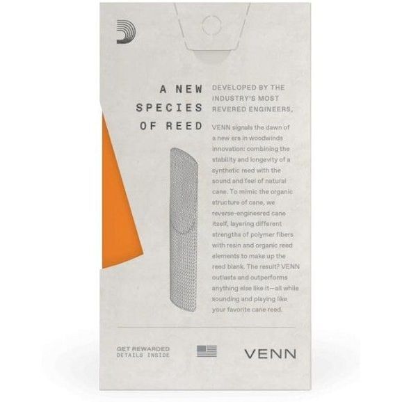 When it comes to capturing the essence of genuine cane in a hard-working synthetic reed, D'Addario VENN Generation 2 Reeds more than fit the bill. Though constructed from layers of polymer fibers, resin, and reed particles, VENN Generation 2 reeds deliver the real-deal feel of cane, which is great for traditionalists seeking a synthetic replacement and beginners wanting the best of both worlds. Players are stunned by the natural feel and organic tone these reeds produce — its enhanced durability is sure to handle your next performance season. Make the switch to synthetic in confidence with D'Addario's VENN Generation 2 Reeds!