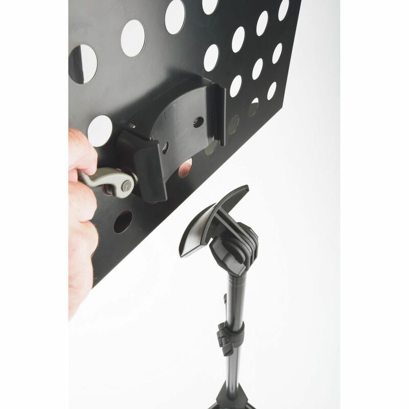 Konig & Meyer Orchestra Music Stand is made of steel and is available in a black colour. Powder-coated, perforated steel music stand with plastic connecting elements. The music stand rest can be attached and removed using the plastic, user-friendly, quick-release lock. There is a large, easy-to-use wing nut making adjustment of the tilt easy. The stand can be freely adjusted to any height using the non-scratch tension sleeve.The K & M 2-Piece Foldable Topline Orchestra Music Stand comes in a black, powder-coated and perforated steel construction that is held together by plastic connecting elements. This Music Stand rest can be attached and removed using the included plastic, user-friendly, quick-release lock. Also, there is a large, easy-to-use wing nut that makes adjustment of the tilt easy. Moreover, the included non-scratch tension sleeve allows the stand to be freely adjusted to any height.