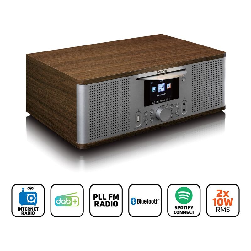 Lenco DIR-270WD Internet / DAB+ FM Radio with CD-Player & Bluetooth - Wood