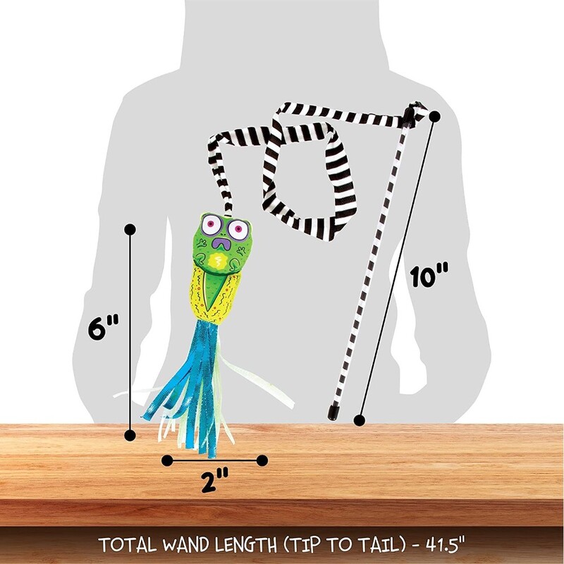 Perfect Size: Stretch Knit tether is 25” in Length from Tip of Wand to dangling character, allowing plenty of space for your cat to lunge and chase the cat toy