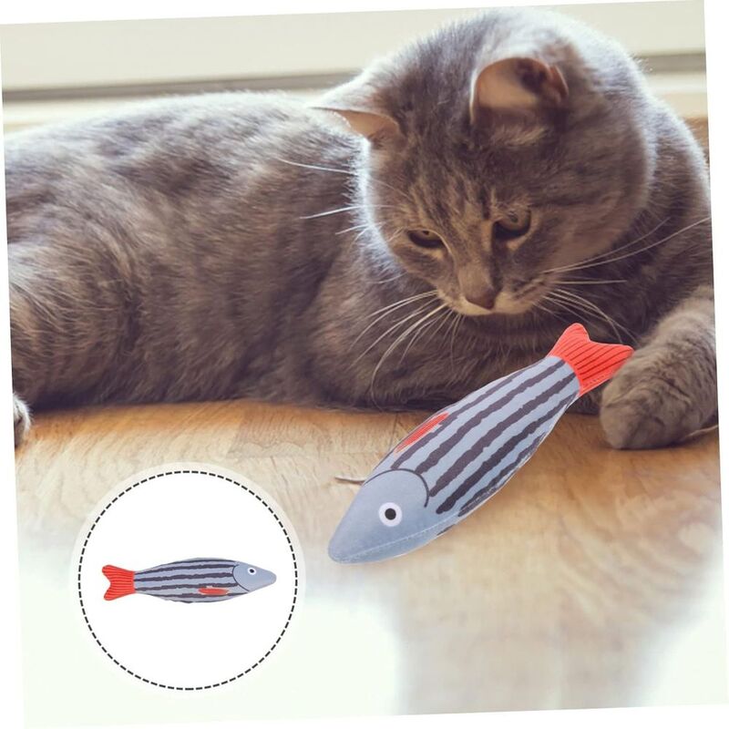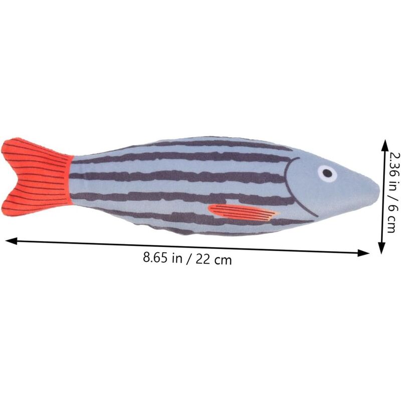 The Wild Catz Mr. Chuck Plush Cat Toy measures 20 x 8 cm and weighs 22 grams. Made from soft plush fabric, it is ideal for batting and cuddling, providing your cat with hours of playful entertainment. The toy features built-in catnip, which helps attract your cat and encourages them to play, scratch, chew, and carry it around. The catnip also contributes to making the toy an exciting and stimulating experience for your cat, promoting both physical activity and mental engagement. This fish-shaped plush toy is designed to reduce loneliness and boredom when you're not around, and its engaging nature can help alleviate your cat's nervousness. The combination of its soft texture and catnip makes it a practical and enjoyable addition to your cat's toy collection.