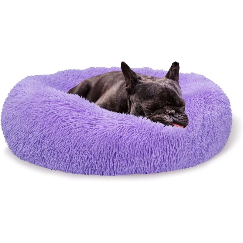 Grizzly Velor Round Plush Purple Dog Bed Small - 50 x 15cm