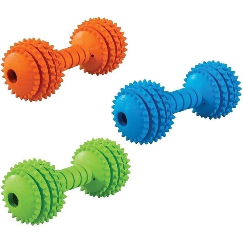 HARD RUBBER DOG TOY: This heavyweight chew toy for large dogs features textured bumps to clean off plaque & keeps dogs' teeth healthy & strong while they play. Heavy duty dog toy is ideal for fetch & tug-of-war.