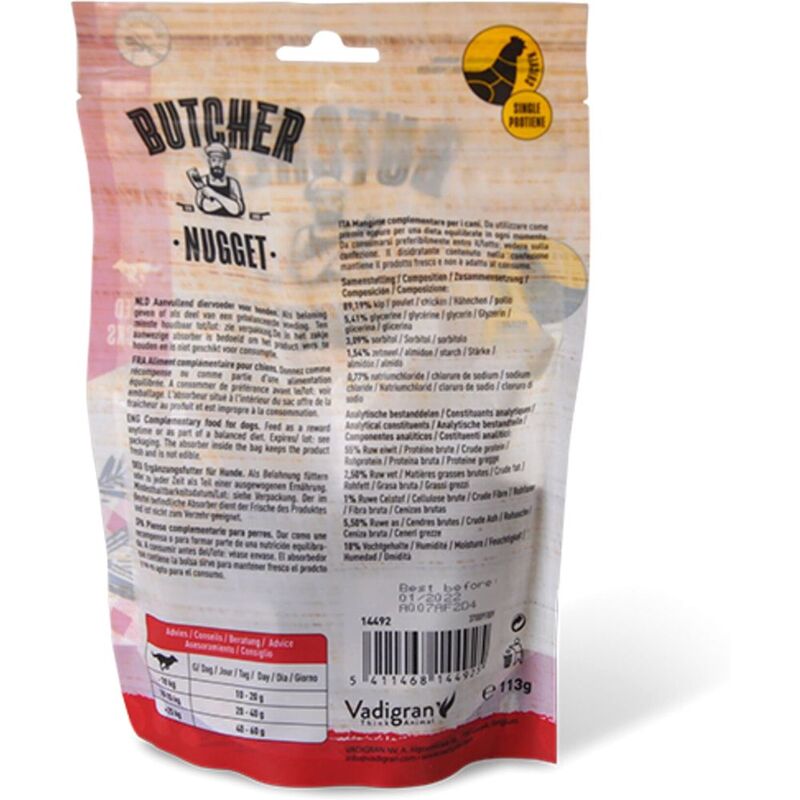 Resealable packaging, the goods remain fresh and the aromas are retainedLow fat foodSuitable for small and large dogs. COMPOSITION
