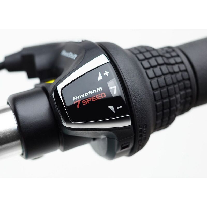 • The Shimano Revo shifter delivers smooth gear shifting, helping to climb hills easily. Brakes control deceleration for swift stopping, while 26-inch Bontrager tires roll smoothly turning the ride into an unforgettable experience