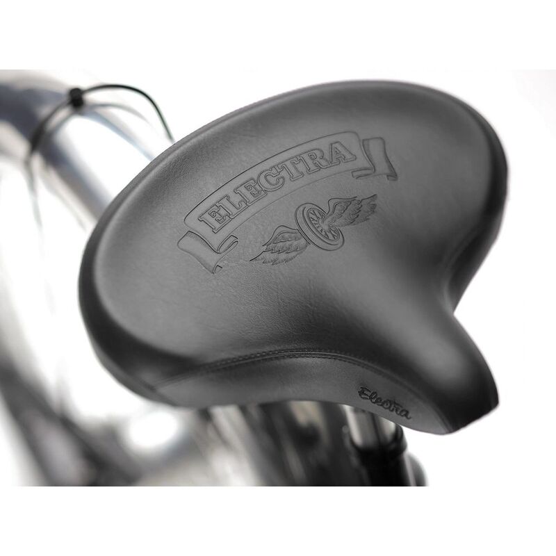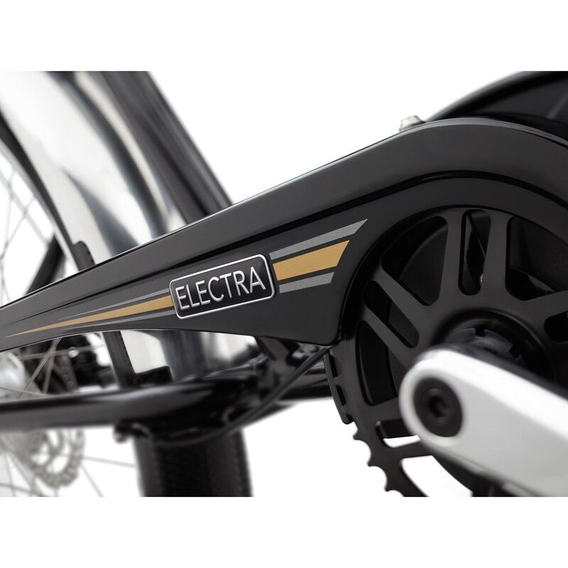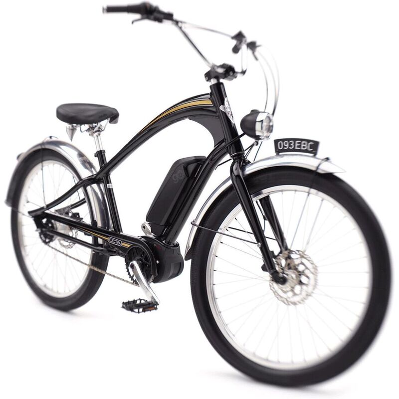 Electra's Ghostrider Go! was inspired by the world's first superbike motorcycle renowned for its power and speed. Hydroformed frame, ultragloss paint with chrome finish, custom number plate blend retro style with modern e-bike technology.