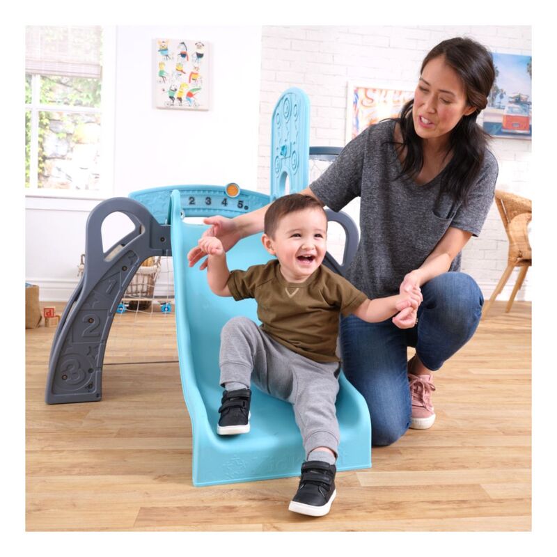 It's game time with the most action-packed climber around. The KidKraft 5-in-1 Sports Climber lets future athletic stars try out different sports in a fun, toddler-sized playset. With a soccer goal, basketball hoop, baseball targets, slide and ladder, there's plenty of action to keep toddlers busy from practice to the pros. Not only will children take aim at their favorite game, they'll also be learning crucial gross motor skills, such as coordination, balance and strength. The 360˚ format allows for multiple kids to play at once. Besides bonding with teammates, kids will also learn independence to go up and down the slide on their own or hang out underneath the deck. Not only does the climber build physical skills, it can also help boost mental thinking as well. Keeping score, strategizing on the next move and counting down the time clock are ways to incorporate a little light learning into the play. Overall, the 5-in-1 Sports Climber from KidKraft is a winner.