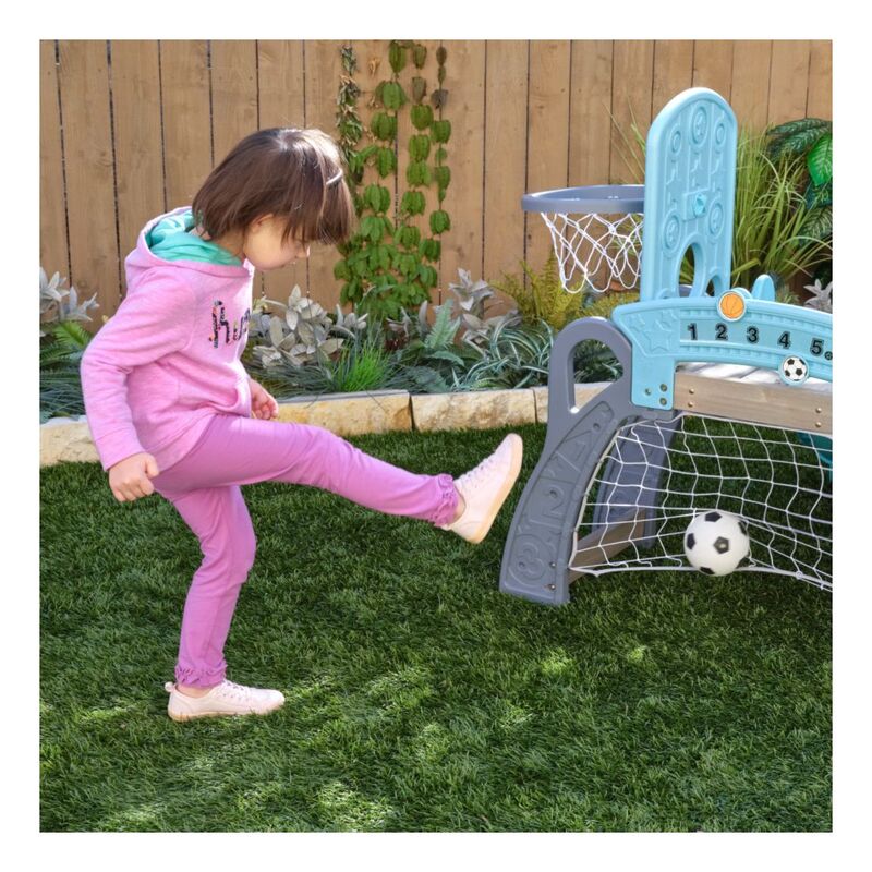 • Comes with 3 junior-sized balls: soccer, basketball and baseball