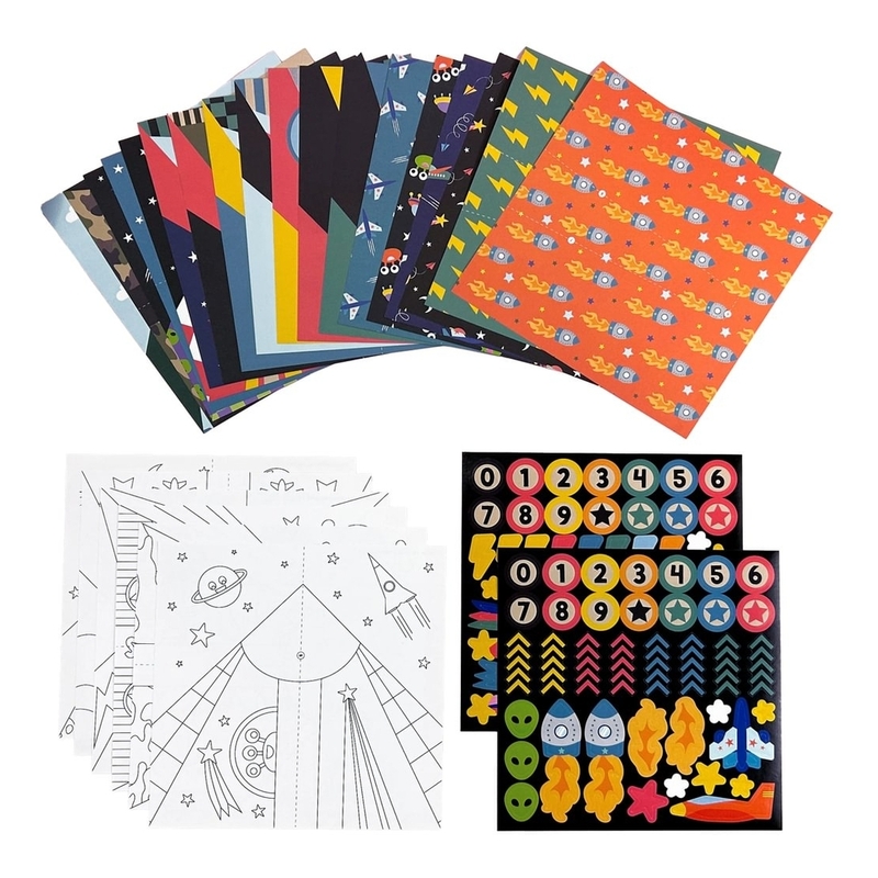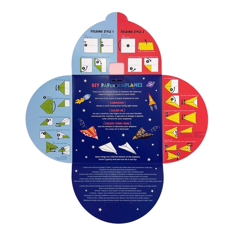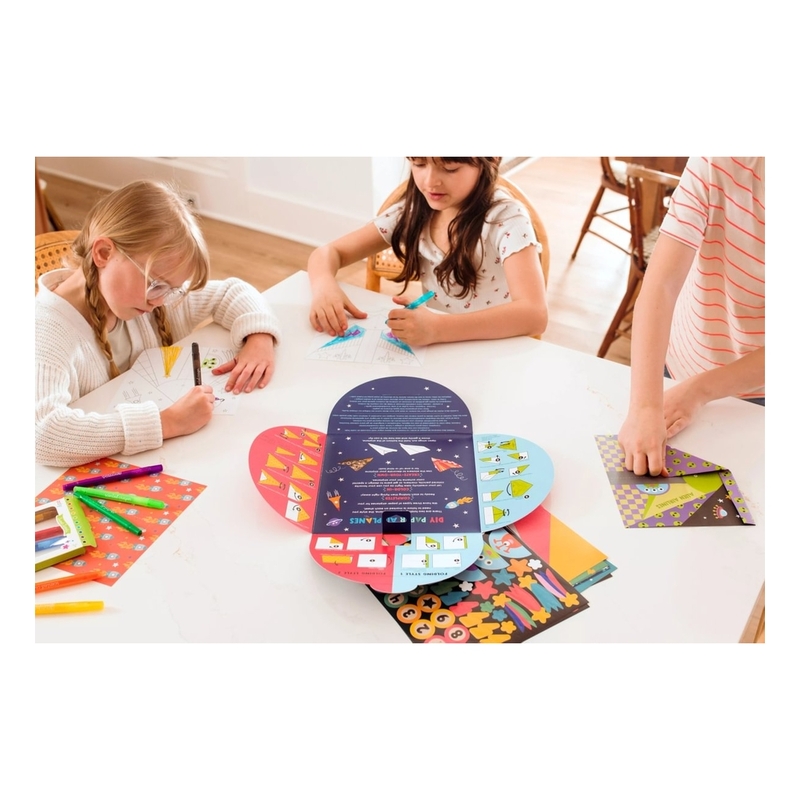 Paper airplane kits let the imagination take flight It’s always a blast to watch your child’s creativity soar, and with this paper airplane kit, prepare to watch their imagination go airborne. This DIY set is jam packed with options, including 12 ready-made designs, 6 to color in, and 6 for creating your own imaginative plane. Two sticker sheets are also included for added customization. This is a wonderful activity to do with your child. The sky’s the limit with these paper airplanes!