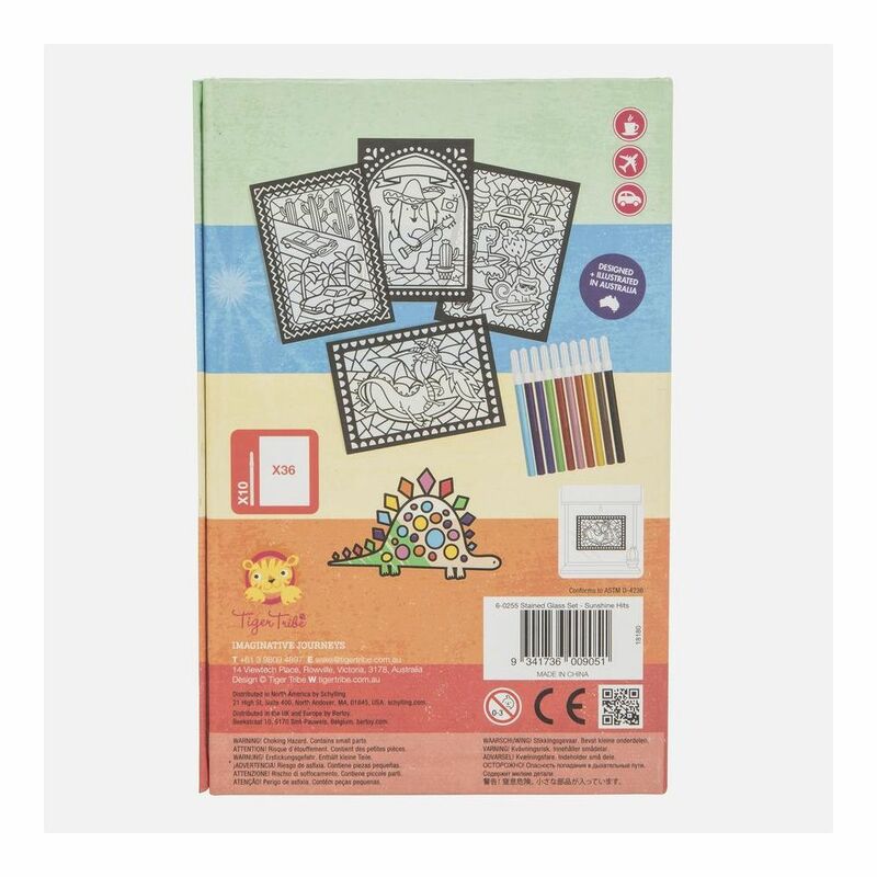 Capture the fantastic vibrancy of stained glass in the sun, with this fabulous new Tiger Tribe Stained Glass Set Sunshine Hits kit, capturing the spirit of summer fun With this kit, fun designs are boldly outlined on translucent paper, so that when you colour them in and hold them up to the light, the beautiful design glows like stained glass