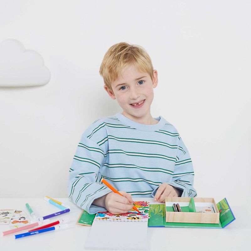 - Classic, all-in-one colouring set in quirky Backyard Bugs design