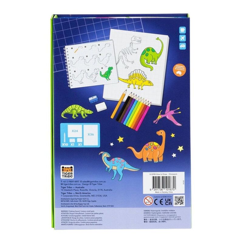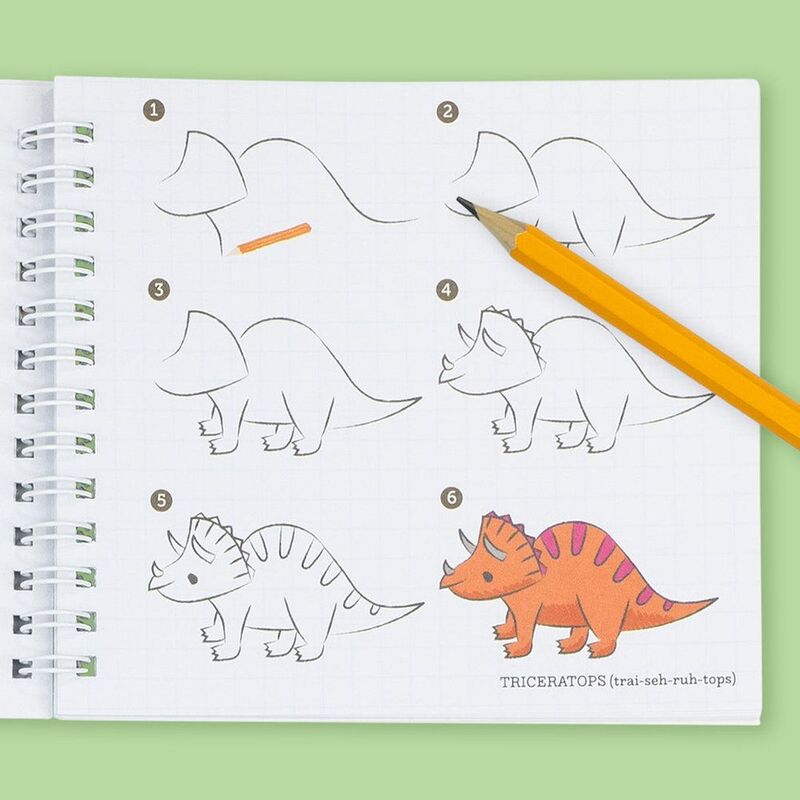• All-in-one activity set teaching kids how to draw dinosaurs