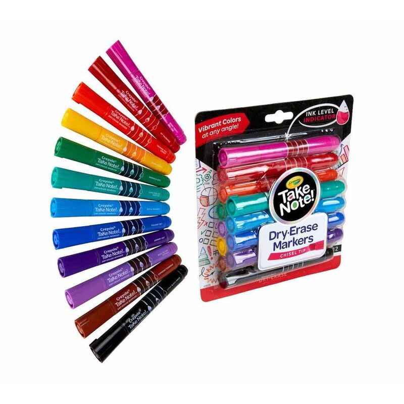 - TAKE NOTE DRY ERASE MARKERS: Includes 12 Take note! Dry Erase Markers from Crayola.