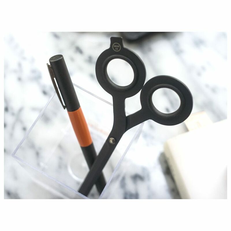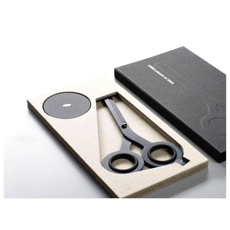 The HMM Scissors are a 2-in-1 essential tool reimagined with style. The unique design allows one flip of the tool to turn the scissors into a boxcutter. They provide a crisp, accurate cut every time for every type of project, and the wide blades and solid weight will leave you feeling confident as you work. Made with Japanese steel and Taiwanese craftsmanship, these Scissors are so sleek that you will want to keep them within easy reach right on your desk.Base - a sleek, minimalist home to the HMM Scissors. The custom-made magnet keeps the square-tip Scissors on a firm footing while displaying the product well to show off your sense of style. When tools are worth flaunting, don't hide them away.