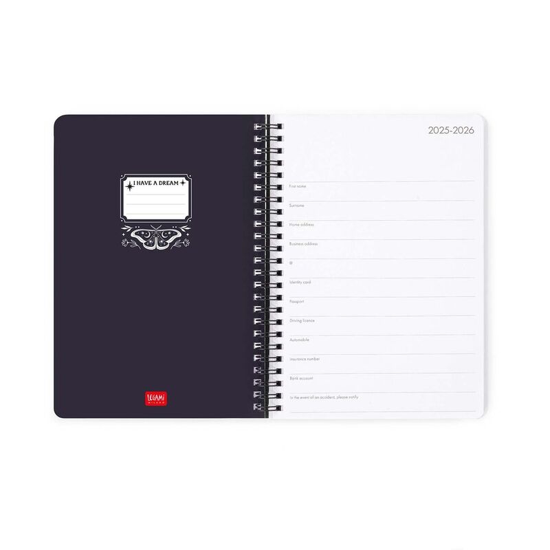 If you believe in the magic of new beginnings, the 16-Month Large Weekly Spiral-Bound Diary - 2025/2026 - Moth from Legami is just what you need. The design on the large, hard cover shows a moth ready to spread its wings and fly with you into the next 16 months.