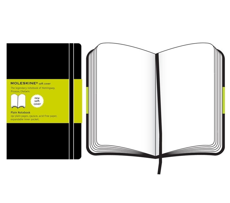 The Soft Cover large notebook with plain pages has a flexible yet sturdy cover that adapts to the movements of the body and fits comfortably in any pocket.This is a reliable travel companion, perfect for writings, thoughts and passing notes. Every Moleskine product is thread bound and has a soft cover with rounded corners, acid free paper, a bookmark, an elastic closure and an expandable inner pocket that contains the Moleskine history.