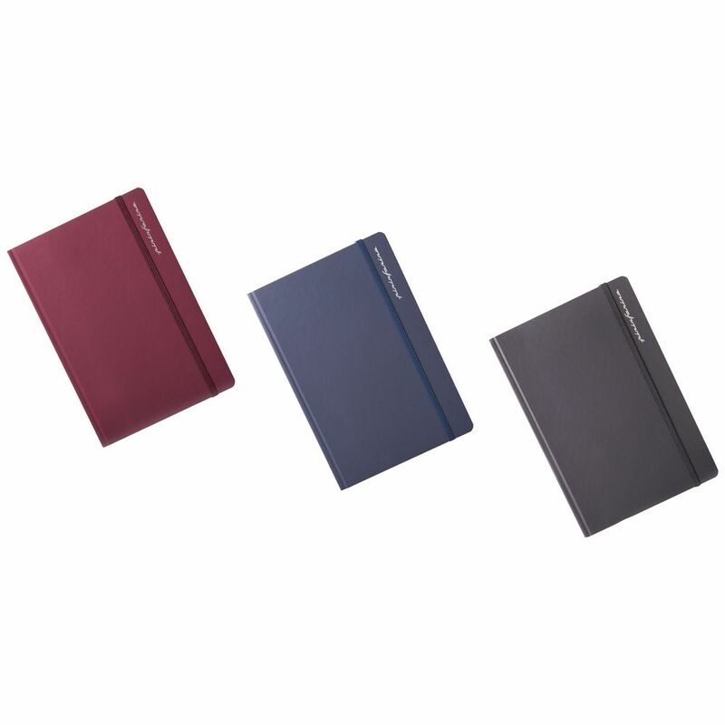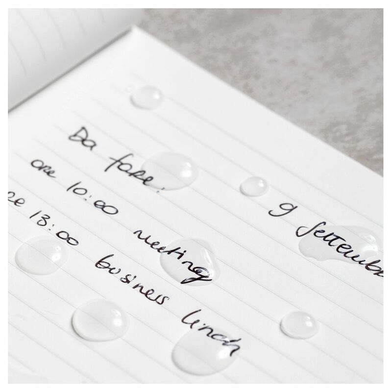 - A soft touch hard cover with elastic closure encloses 128 pages made from stone waste