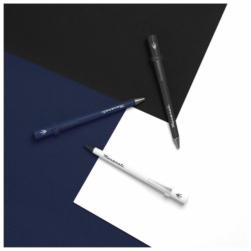 Primina Maserati is available in three colors: white, black and blue. Small-size version of Prima is a young and witty instrument, designed to tell stories of emotions and thoughts using the special Ethergraf tip. In this special version personalized with the iconic Maserati Trident.
