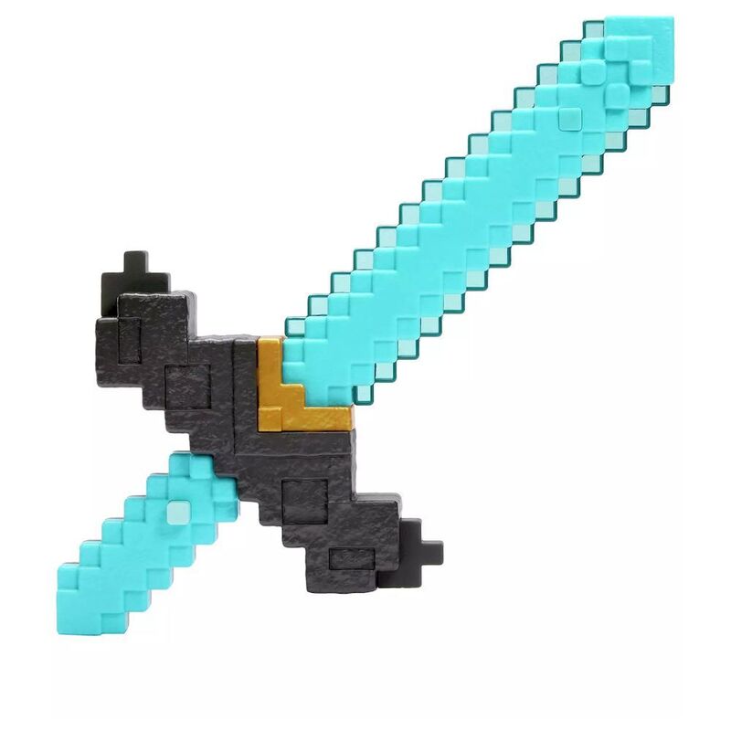 - Flip from the diamond sword in its aqua blue coloring to a wood and iron pickaxe.